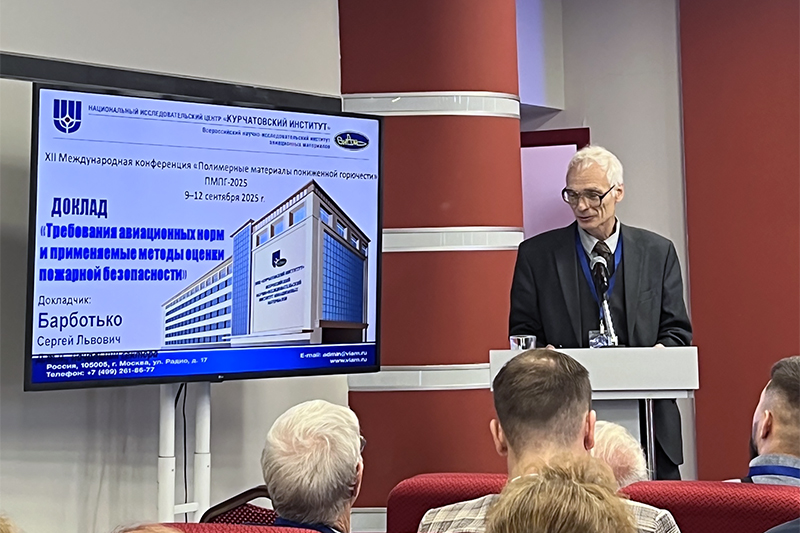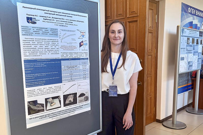 Эксперты НИЦ «Курчатовский институт» – ВИАМ приняли активное участие в работе конференции, выступив с докладами в рамках ключевых направлений мероприятия. Начальник сектора пожаробезопасности лаборатории Сергей Барботько выступил с докладом о требованиях авиационных норм и применяемых методах оценки пожарной безопасности. Инженер Анна Пушница представила стендовый доклад по теме «Полимерный огнезащитный материал для повышения пожарной безопасности конструкций авиационной техники».